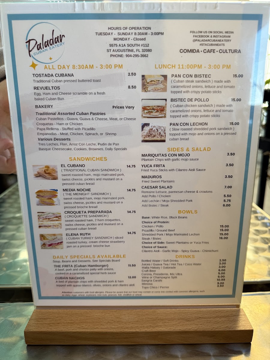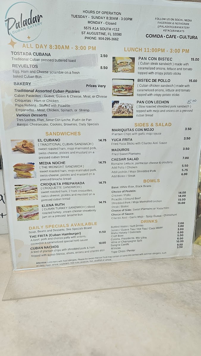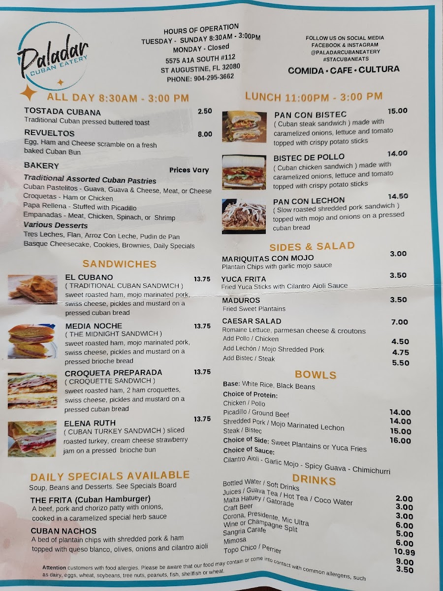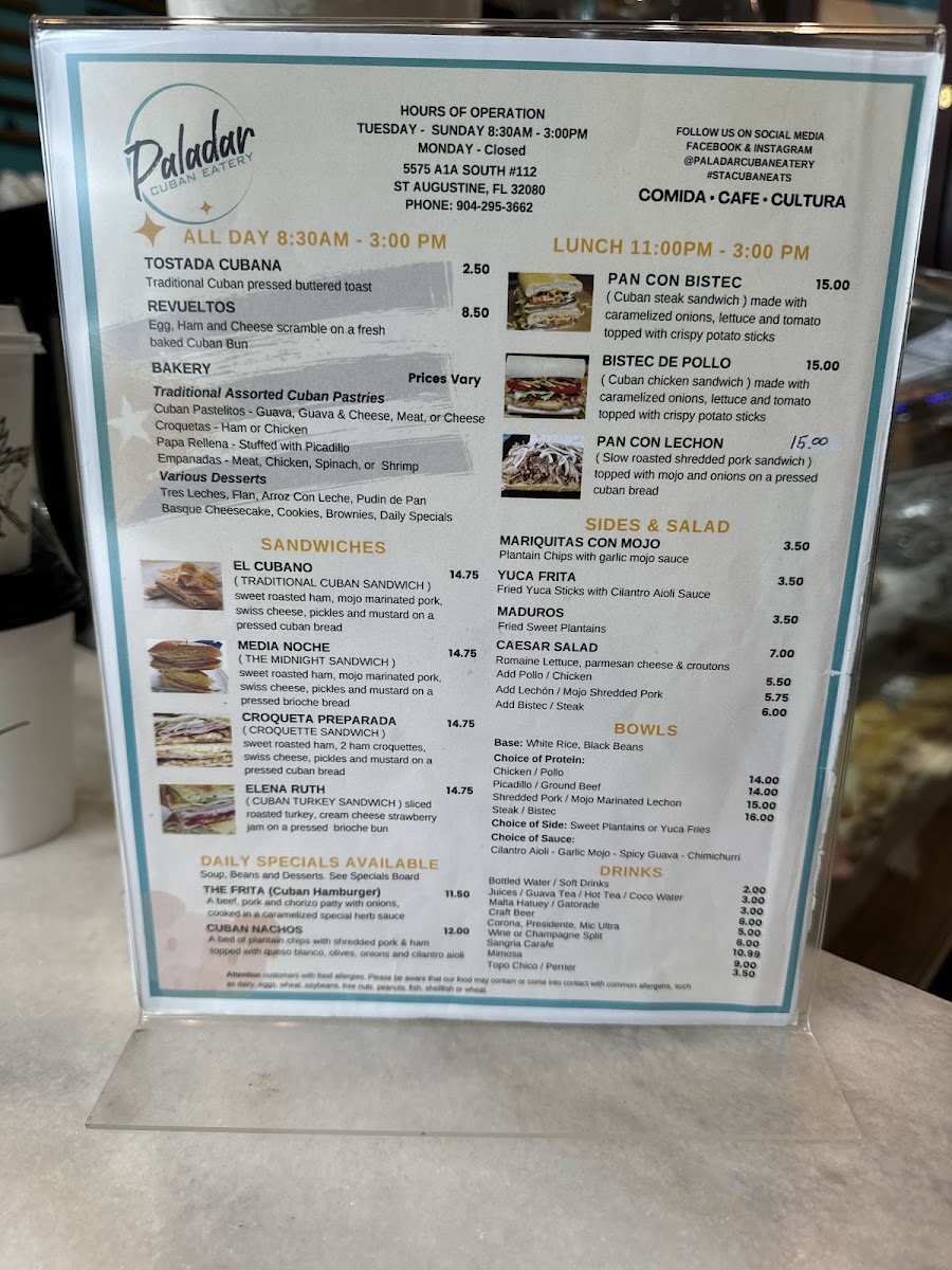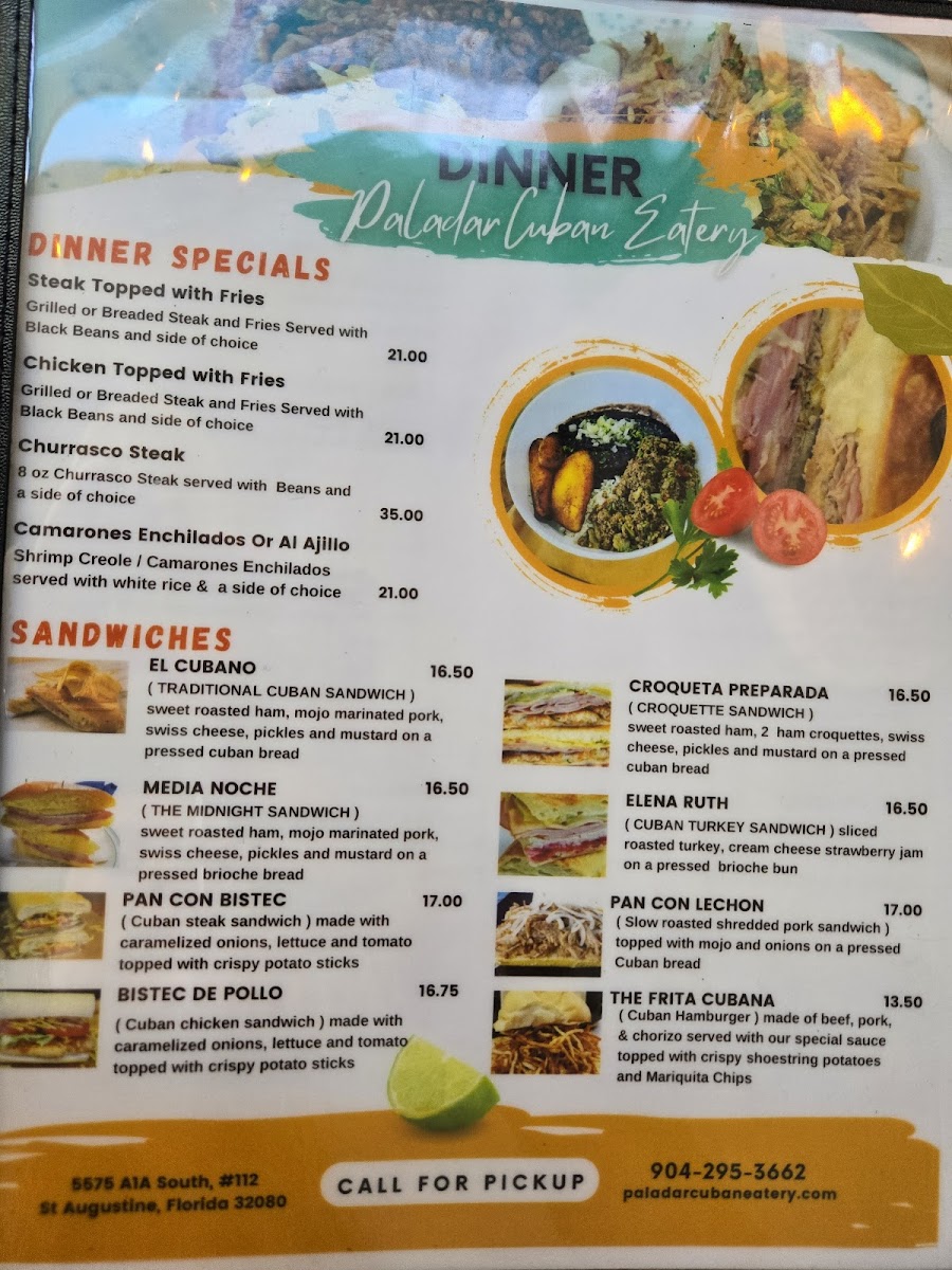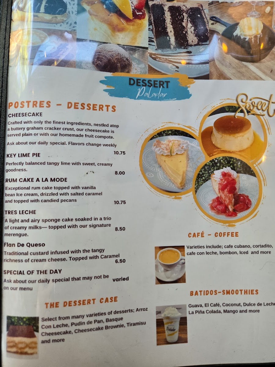 The menu at Paladar Cuban Eatery & Bakery offers a balanced mix of comforting café-style bites and satisfying Cuban classics, creating a laid-back yet flavorful dining experience. Whether you’re stopping by for a morning pick-me-up or a leisurely lunch, the menu pairs well with the welcoming, casual atmosphere of the place.